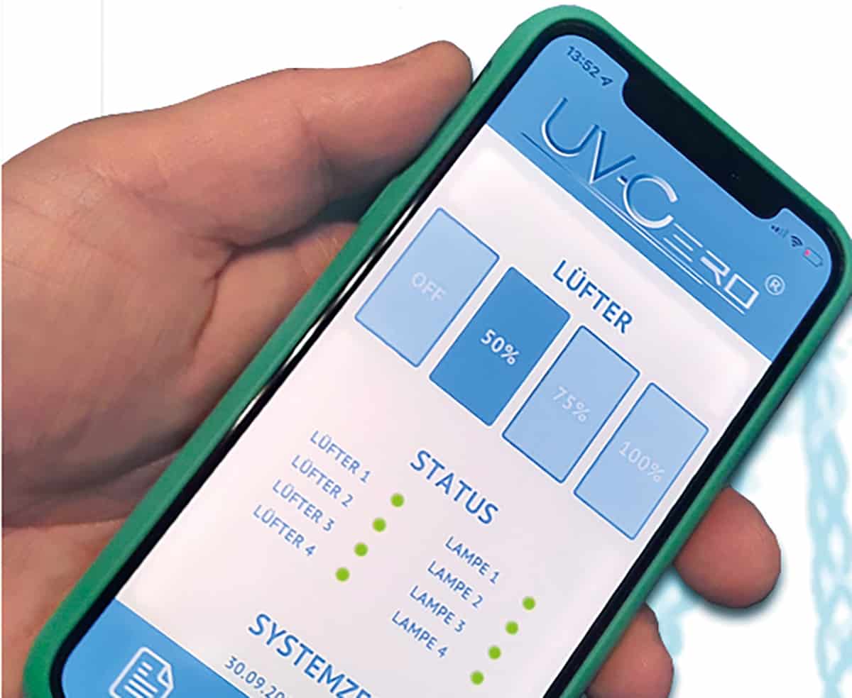 Deutsche Virologinnen, Virologen, Physikerinnen und Physiker haben für solche Anwendungen mit der Luftdesinfektionsanlage UV-Cero 300 (ReTecCom; www.uv-cero.de) ein System entwickelt und vorgestellt, das in Sachen Praktikabilität und Wirksamkeit sehr gute Daten vorweisen kann. Es basiert auf der Zerstörung potenziell krankheitserregender Partikel in der Luft durch ultraviolettes Licht. Die Geräte saugen die Luft in Innenräumen an. Der Luftdurchsatz beträgt je nach Einstellung zwischen 150 und 300 Kubikmeter pro Stunde und Gerät. Die Geräte selbst werden an der Raumdecke oder an einer Seitenwand in etwa zwei Meter Höhe installiert und benötigen außer einem Stromanschluss keine anderen Voraussetzungen. Die Installation erfolgt an den vorgesehenen Orten, da keimhaltige Aerosole eben vor allem im Raum herumschwirren.