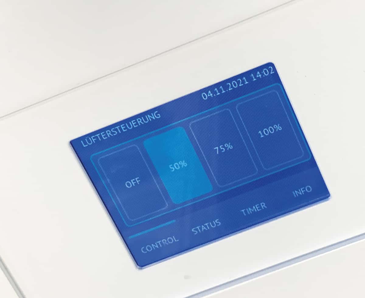 Der Geräuschpegel liegt bei 38 bis 54 dB, je nach Regelung. Und das ist wohl von der Raumgröße abhängig, in der die Luft mit einem Gerät „gereinigt“ werden soll: Bei 50 Prozent Leistung können pro Stunde bis zu 150 Kubikmeter Luft desinfiziert werden, bei hundert Prozent sind es Räume von bis zu 300 Kubikmetern. Für größere Anwendungen kommt die Installation von weiteren Anlagen in Frage. Die Konstruktion verhindert jede potenziell schädliche UV-Strahlung außerhalb der Geräte. Dazu gibt es einen Prüfbericht der deutschen Gesellschaft zur Förderung von Medizin-, Bio- und Umwelttechnologien e. V. vom 4. Jänner 2021 nach DIN EN ISO 15858 2017.